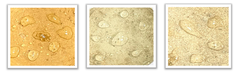 特長① 優れた撥水・撥油 ・紫外線や雨風の劣化保護、細かな傷の軽減に! ・水や油をはじくため、汚れが付着しにくい清掃も容易! ・コロコロ転がるように流れる水滴 |