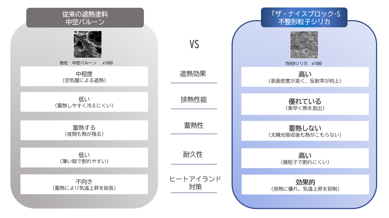 不整形粒子シリカを使用した「ザ・ナイスブロック-S」は、従来ある中空ビーズ・真球ビーズよりも安価!