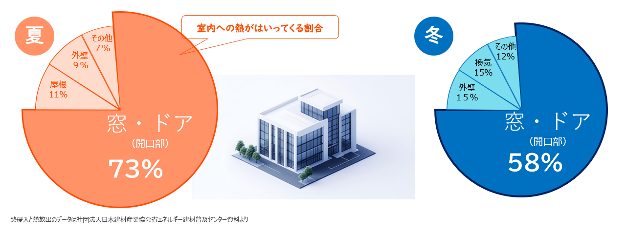 冷暖房のムダを省き、効率よく利用するためには窓の断熱対策や遮熱対策がとても重要です。